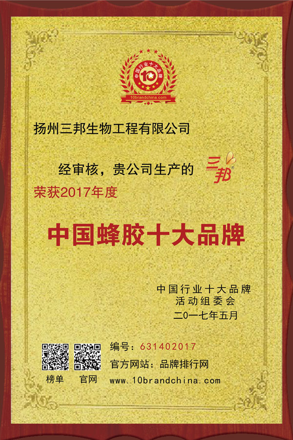 揚州三邦生物工程有限公司源于1970年,由原江都蜂乳廠(地方大集體單位)2000年改制重組,是多年從事蜜蜂養殖、蜂產品和食品科研、生產、銷售的全國蜂產品行業龍頭…...